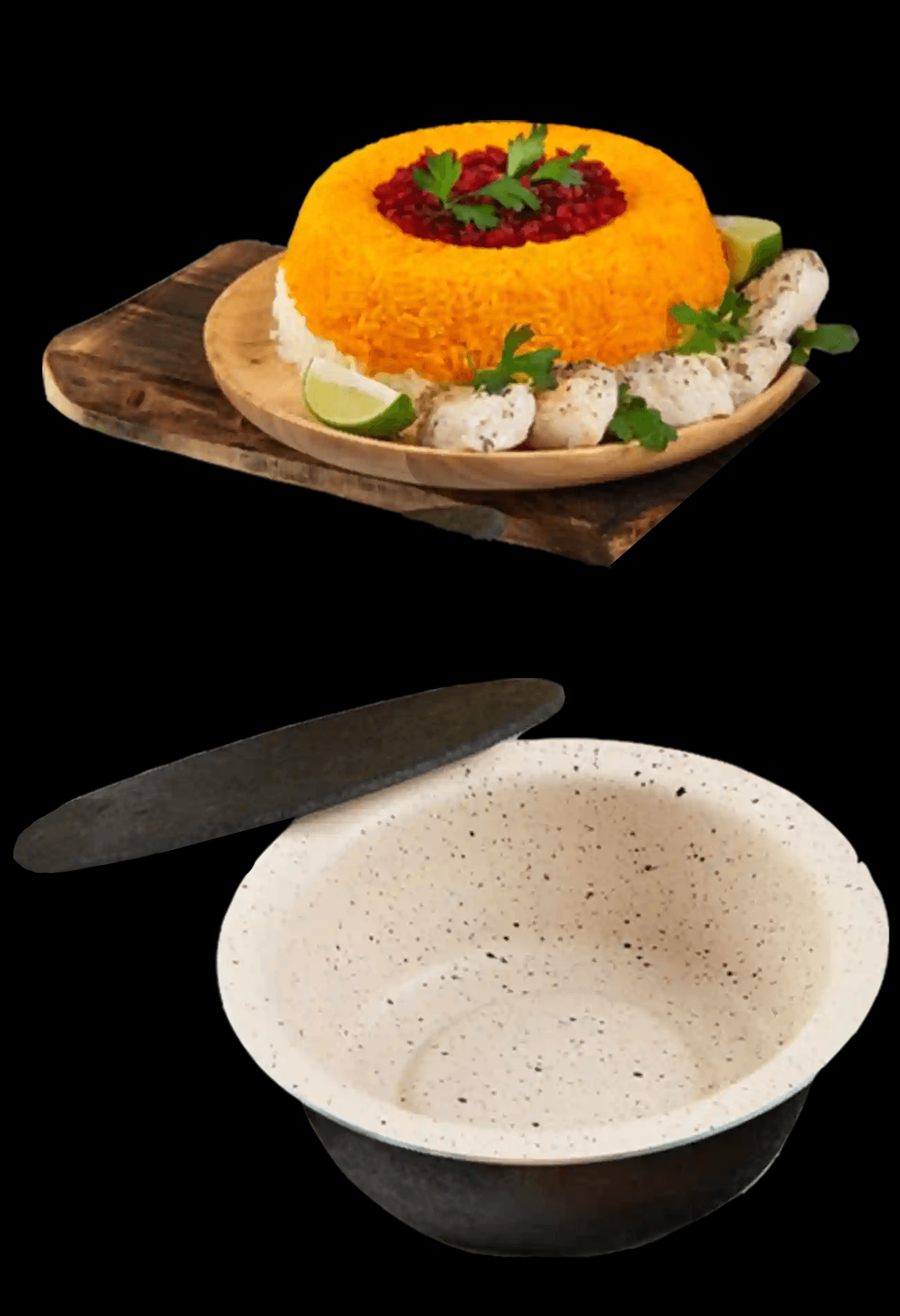 قالب ته چین گرانیتی یکی از قالب های پرکاربرد و پرطرفدار در خانه و آشپز خانه به شمار می اید که در انواع طرح ها و نقش های متفاوت در بازار وجود دارد. قالبهای تفلون با روکش گرانیت، به عنوان یکی از محبوبترین انتخابها، مزایای بیشماری را برای پخت ته چین و کته ارائه میدهند.